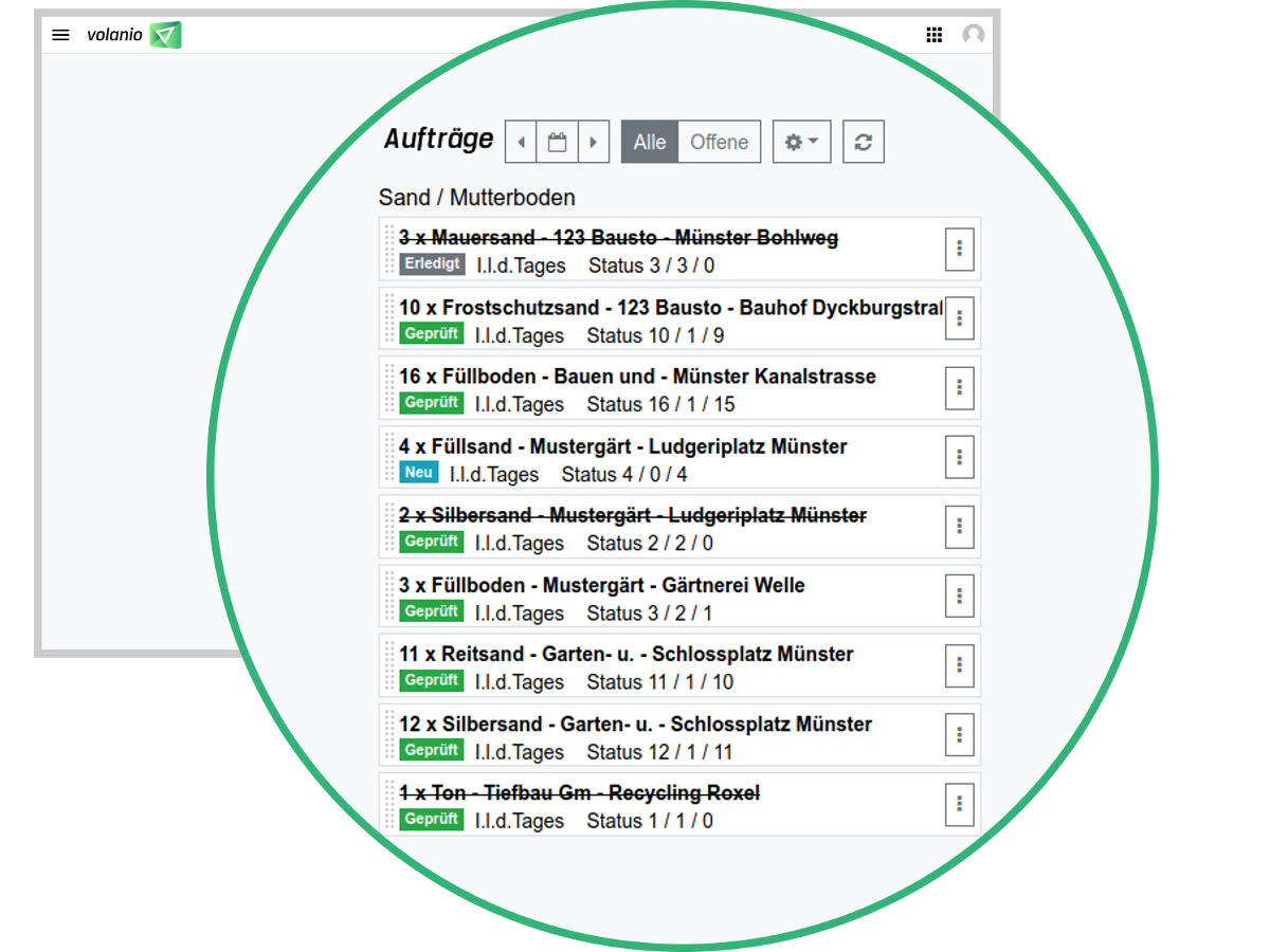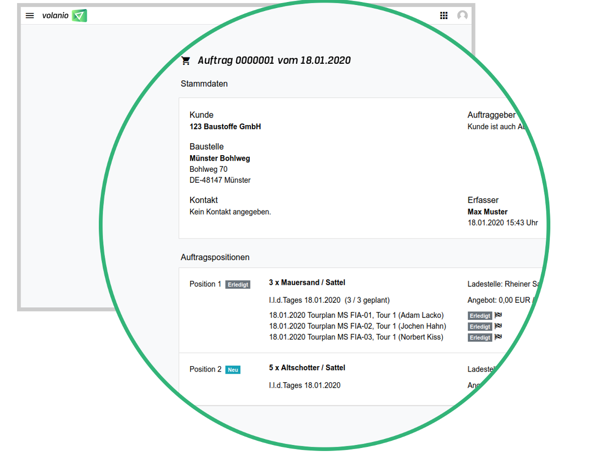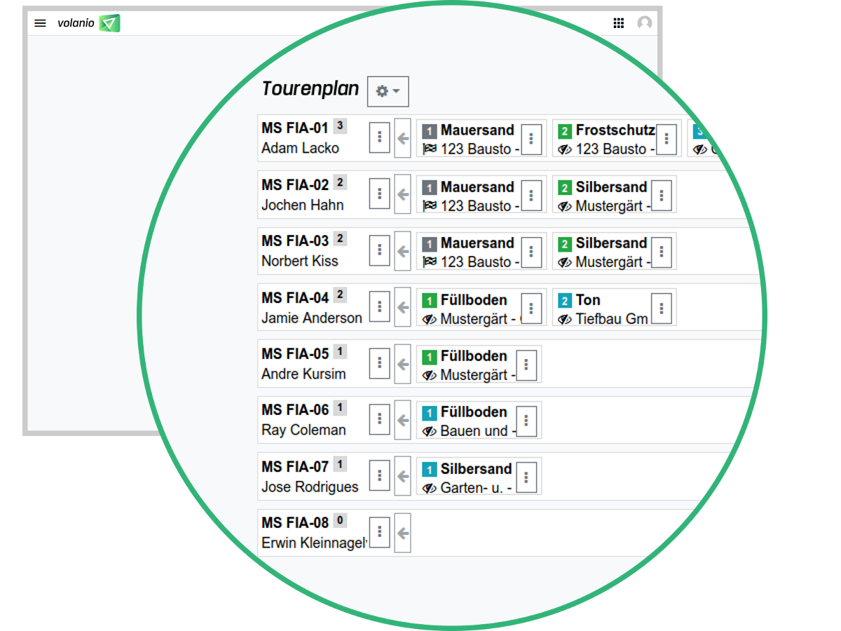 Diese Funktionen zeigen dir, wie wie einfach Schüttgut Disposition mit Volanio ist.